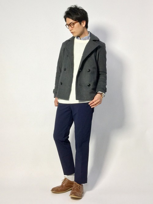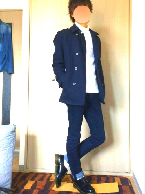 シックで誠実な印象に見えるネイビー(紺)のPコート。次はこちらについて実際のメンズコーデをチェックしていきます。
