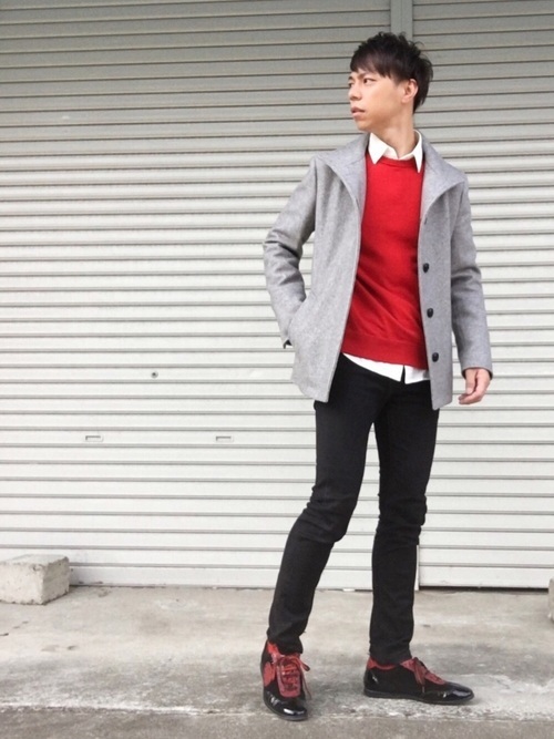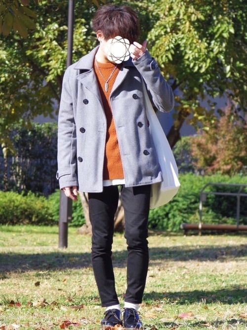 ビジネスにも流用可能なグレーのPコート。こちらも実際のメンズコーデをチェックしていきましょう。
