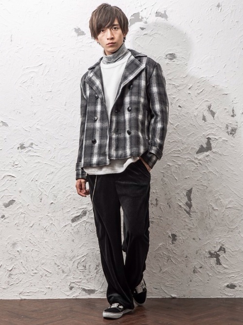 チェック柄のPコートも秋冬の着こなしにはおすすめ。一枚で主役になってくれるうえにコーデの幅も広がります。こちらのメンズコーデでは襟元にタートルネックをもってくることでボリュームを作り出しています。さらに足下にスニーカーを持ってきてカジュアルに。革靴を合わせるとエレガントに着こなすこともできます。