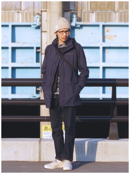 コロンビアのマウンテンパーカー着用メンズコーデ例