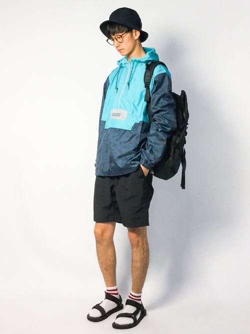 野外でのアクティビティに最適なショートパンツスタイル。動きやすくリラックス感もある定番スタイルですが、一歩間違うと子どもっぽくなってしまうので注意が必要です。マウンテンパーカー以外のアイテムを黒やカーキ、グレーなどのダークなベーシックカラーでまとめれば、インパクトのあるカラーのマウンテンパーカーでも大人らしくスマートにきまります。
