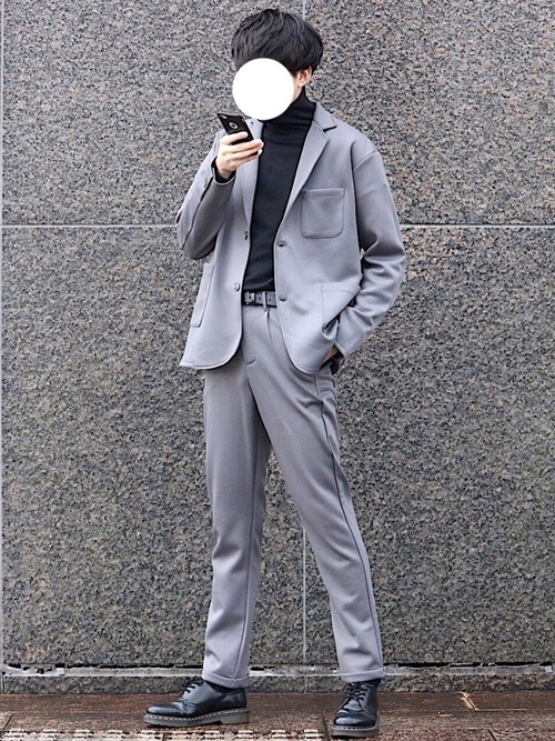 セットアップはトレンドアイテムです。特にグレーパンツとグレージャケットは大人な雰囲気に仕上げられるため、若者男性から大人男性まで着こなせます。こちらのコーデのように、足元にドレスシューズを合わせてきれいめに仕上げてもいいですが、あえてスニーカーを履き抜け感を演出するのもおすすめです。