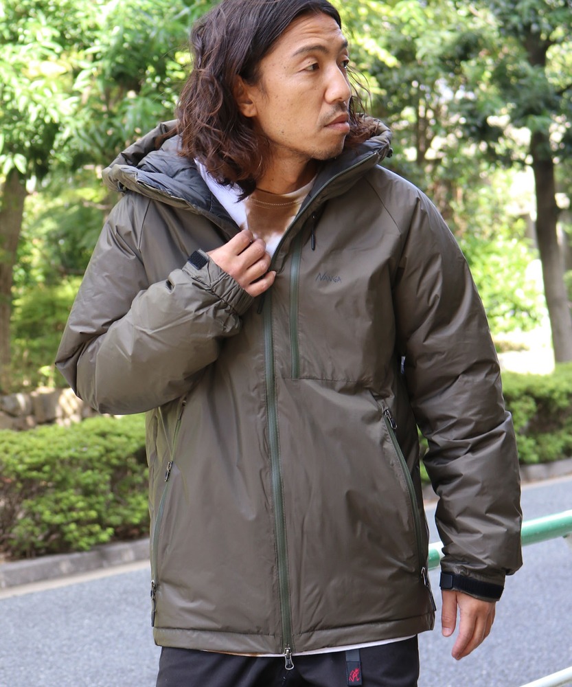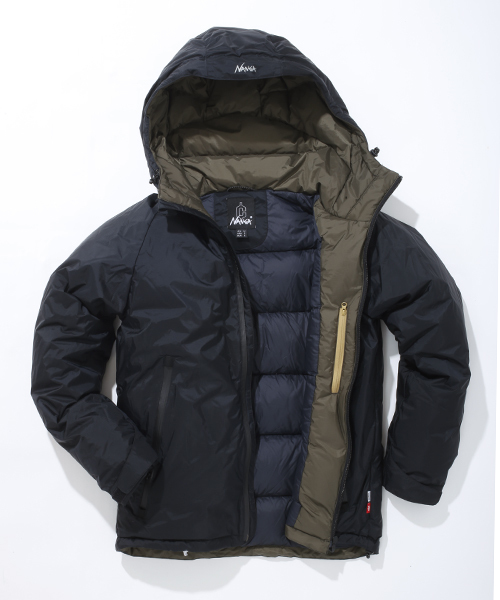 NANGAのフラッグシップモデル「AURORA DOWN JACKET」。保温力に加え、防水防風性もある機能ジャケットです。アウトドアでも街でも着こなし可能なシンプルなデザイン。メインジップをはじめ、ポケット類のジップを全て止水ジップにすることで、防水性を向上しています。