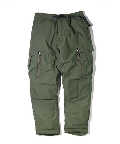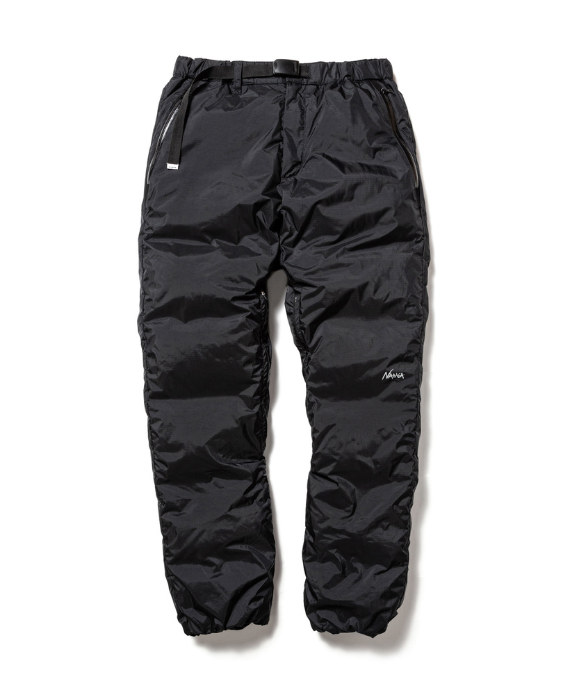 防水仕様のオーロラテックスを使用したアウターダウンパンツ。立体裁断により可動域を確保。股下の股下のベンチレーションによって温度調整機能を備えています。カラビナや小物を装備できるループ付き。