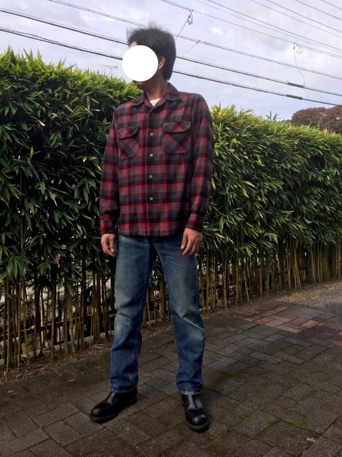 ペンドルトンのシャツ×ブラックパンツ