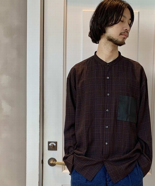 肌触りの良いレーヨン素材を使った、胸元のレザーポケットがアクセントになっているシャツ。小さなチェック柄が上品でクラシカルな印象です。着丈が長めに設定されたロングシャツのため、大人メンズにぴったりなドレッシーな着こなしにもふさわしい仕上がりです。