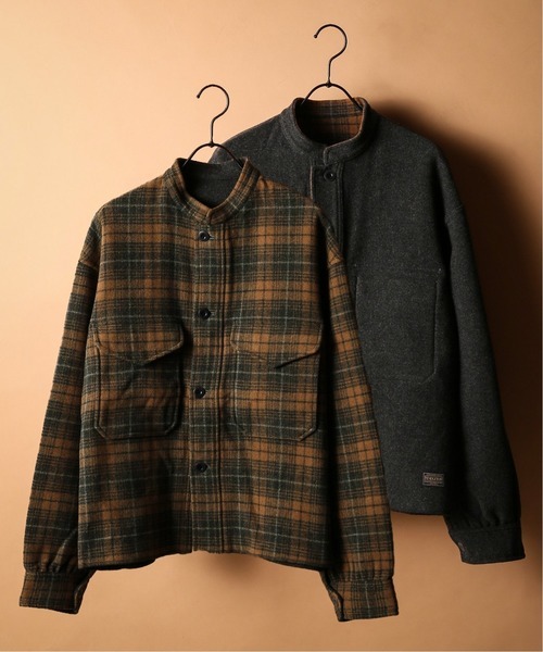 1枚で2つのスタイリングが楽しめるリバーシブルタイプ。ひとつは落ち着いた色合いのペンドルトンらしいチェック柄です。もうひとつは、着回し力の高い無地タイプとなっています。また、このCPOシャツ襟はすっきりとしたスタンドカラーになっているのもポイント。フーディーなどと重ね着してももたつかずに着こなせます。