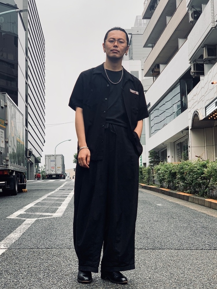 黒で統一すると地味になりやすいですが、生地に特徴のある半袖レーヨンシャツであれば心配ご無用。同じ黒色でも生地感によるメリハリを付けることができ、夏場のオールブラックコーデでも大活躍してくれます。また、黒は夏に涼しく目に映るのでおすすめですよ。