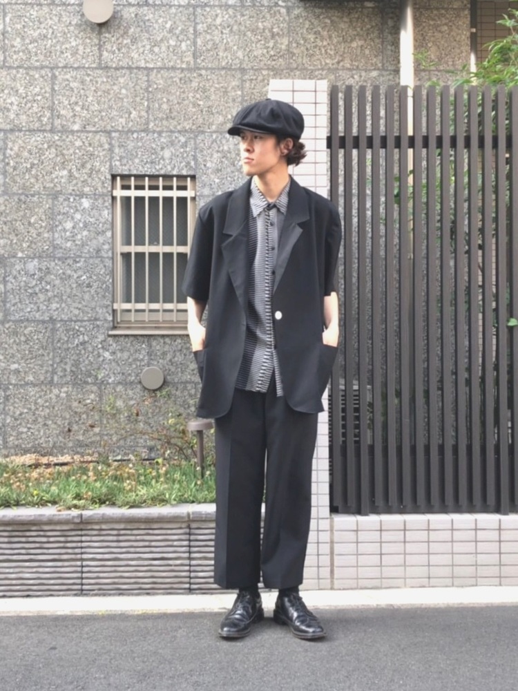 レーヨンシャツに半袖テーラードジャケットを合わせる着こなしは、ブリティッシュな印象が増してカッコいいです。この際、インナーと他のアイテムを似た系統の色で統一してあげると、コーデ自体も上手く簡潔にまとまりますよ。