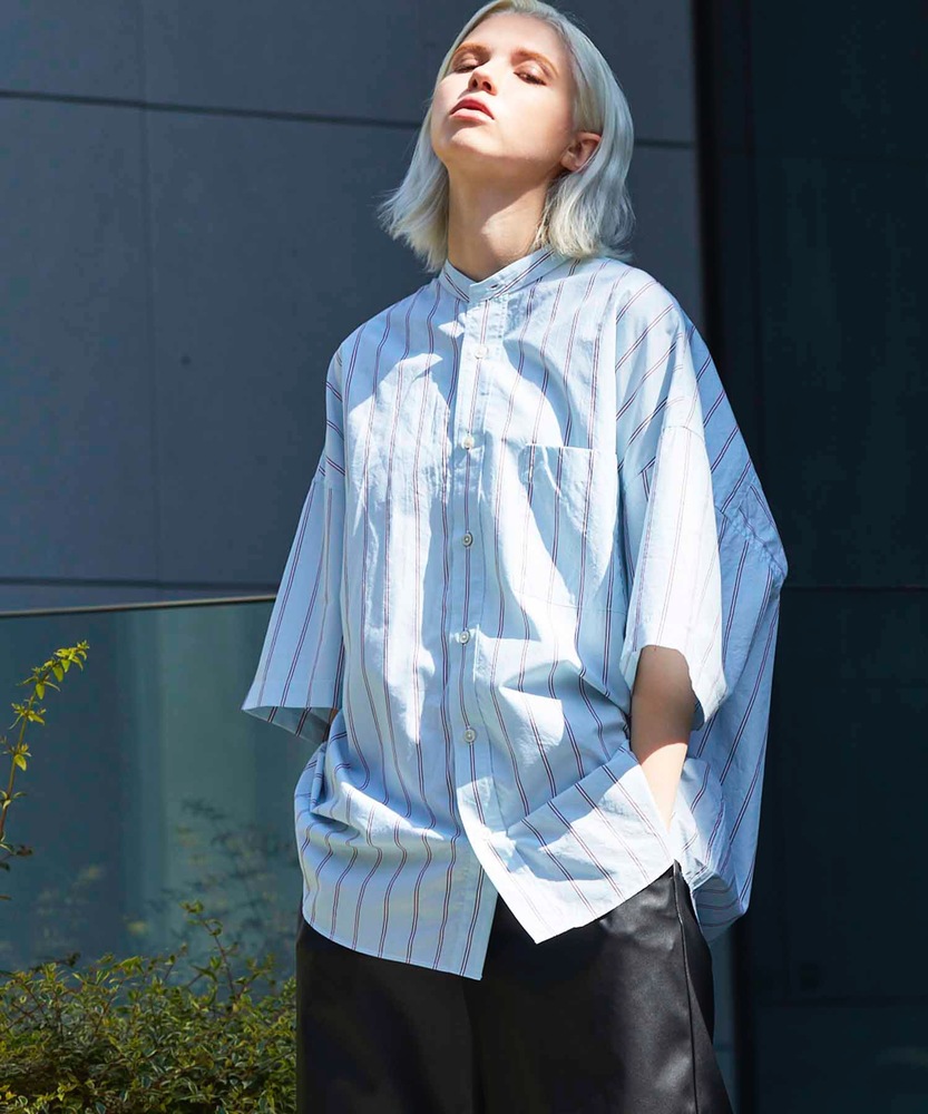 縦糸にレーヨン、横糸にコットンポリエステルを使用しドライ感のある生地に仕上げた一着。ビッグシルエットなので、トレンドライクな着こなしが可能になります。
