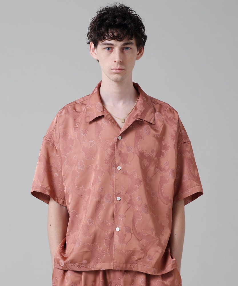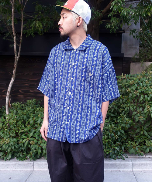 ドロップショルダーでオーバーサイズに仕上げ、染み込みプリントを施し美しいプリントを楽しめるように仕上げたレーヨンシャツ。着こなしによってストリートテイストにも古着テイストにもなる万能アイテムです。