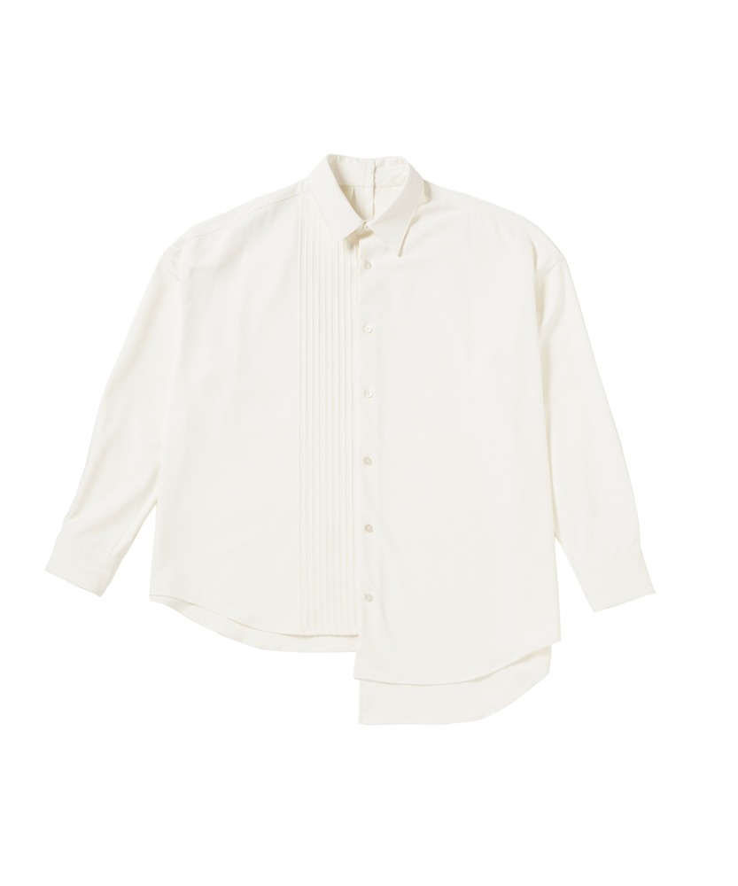 左右で丈に違いのあるアシンメトリーなシャツ。シンプルな白や黒でも縦のプリーツが目立つので、比較的フォーマルでドレスライクな着こなしを楽しむことができます。
