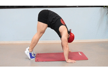 ①腕立て伏せのフォームからお尻を上へ突き上げるように身体を曲げる