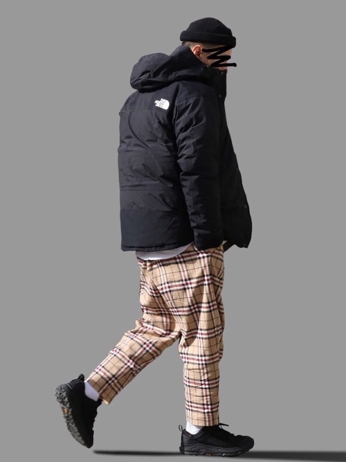マウンテンダウンジャケットとイージーパンツのコーデです。メンズファッションにレディースのアイテムを取り入れることで中性的でおしゃれな着こなしに。レディースのアイテムはメンズのアイテムよりも鮮やかな色やデザインのものが多いのでメンズでも遊び心を演出できます。
