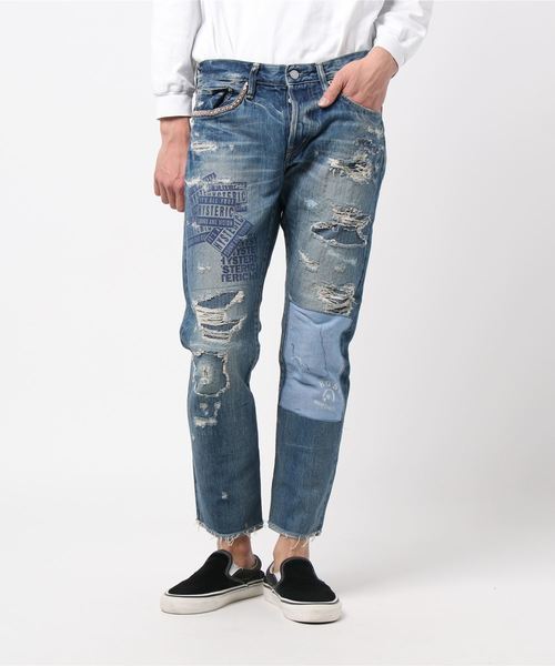ヒステリックグラマー プリントパッチリメイク テーパードデニムパンツ