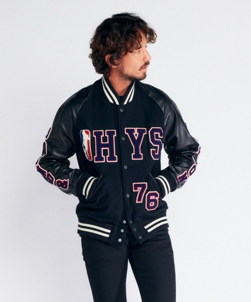 大胆に入ったサガラアップリケで、プロリーグのジャンパーをオマージュして作られたスタジャンです。スタジャンの袖部分にはラムレザーを使用し、男らしさを表現。衿や袖口、裾にはラインが2本入ったリブを採用し、スポーティな風合いもミックスさせています。コーデの主役になる、おしゃれなスタジャンを探している人にもおすすめです。