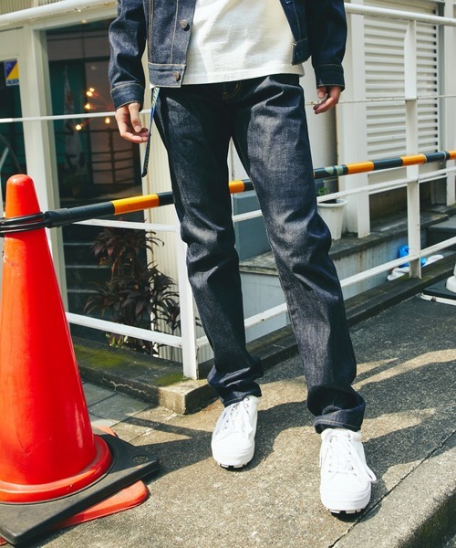 50年代のヴィンテージデニムを参考に作られた、ストレートデニムです。色は若干紫に見えるよう染色回数を少なくし、フラットな生地表面に見えるよう仕上げた11オンスのムラネップセルビッチデニム生地を使用しています。控えめなユーズド感と履きこなしやすいシルエットも魅力です。