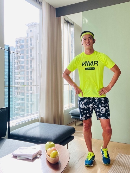 暑い季節のスポーツにおすすめのコーデです。全体的に涼し気な服装で、激しいスポーツでも難なくこなせそうですね。イエローのTシャツにイエローのヘアバンドは非常に目立つため、夜間のランニングでも事故に遭いにくくなっています。