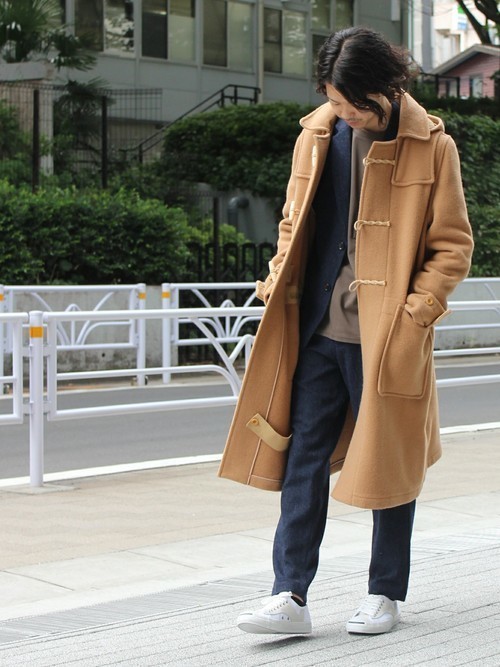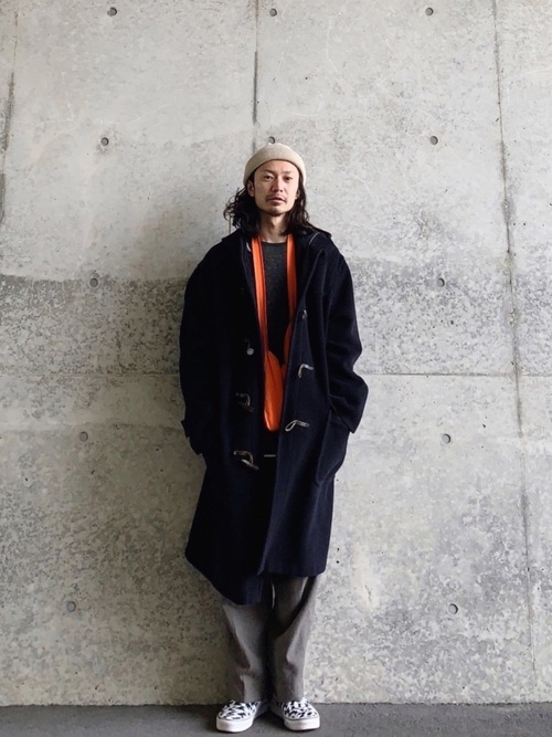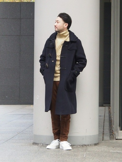 重ね着に適したゆったりとしたシルエットで、ダッフルコート本来の機能性と無骨な雰囲気が好きな方におすすめの逸品です。