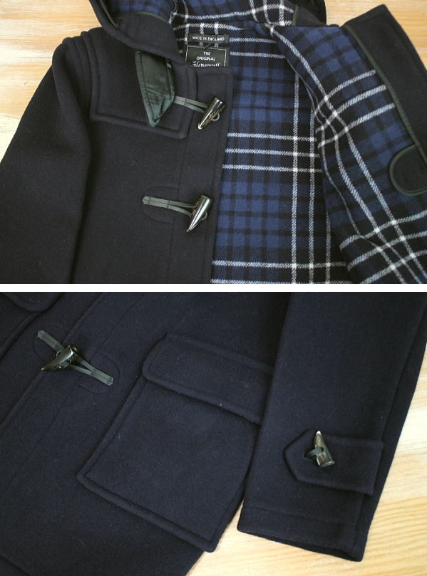 生地には高密度で保温性の高い一枚もののメルトン素材を使用しています。毛羽立ちのある味のある生地で、少しの雨や雪なら弾いてくれるでしょう。トグルは他のモデルより1つ少ない3つで、視覚効果によって縦のラインが強調され、すらっとして見えます。