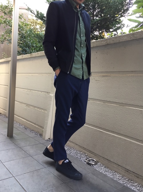 オープンカラーシャツ×スリッポンコーデ
