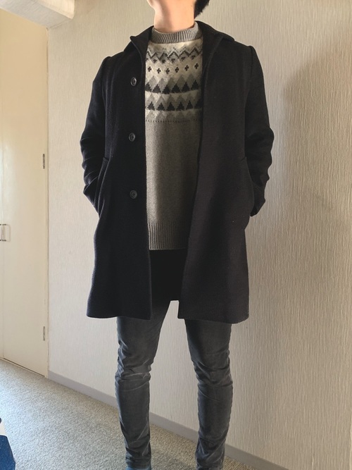 ニットスヌード×チェスターコートコーデ
