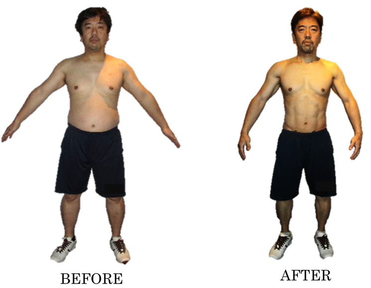 1ヶ月ほどで当初の目標設定5㎏の減量を達成。その後も面白いように体重が減っていきました。それにともないトレーニング開始からわずか数ヵ月で検査結果は改善し、健康を回復することが出来ました。