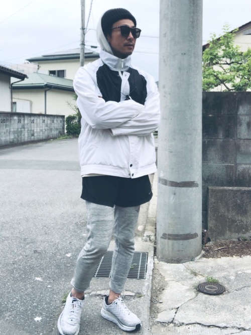 レッグウォーマーを活用することにより、身体を冷やさずランニングを楽しむことができます。モノトーンで揃えたメンズコーデですが、足元に蛍光色をもってくることで華やかなポイントを作っています。