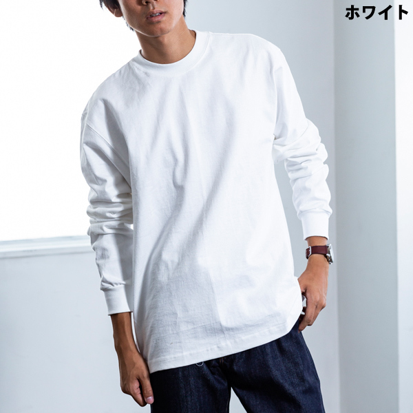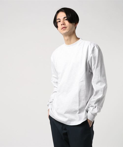 6オンスの天竺素材を使用したヘビーウェイトのロンT。マックスウェイトのTシャツと比べて軽い着こなしになるのが特徴です。マックスウェイトよりも伸縮性があるので、がっしりとした着心地が苦手な人にもおすすめ。