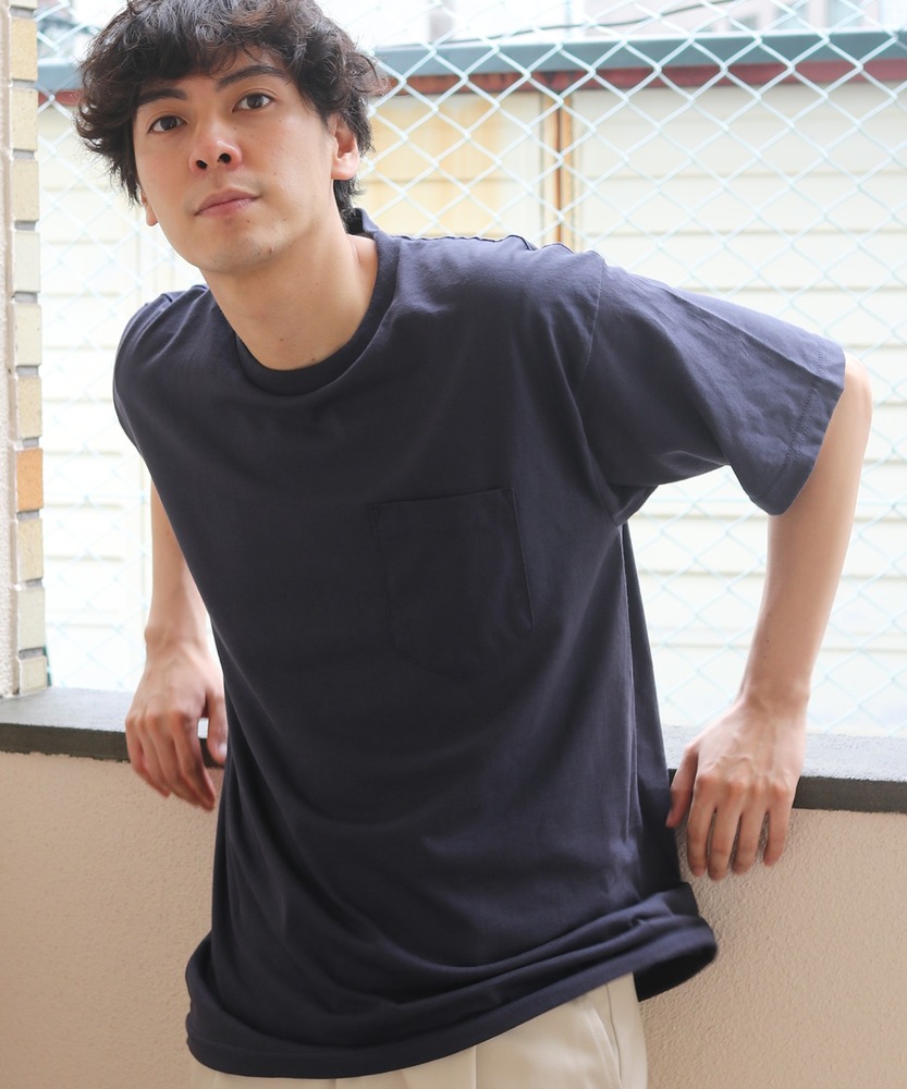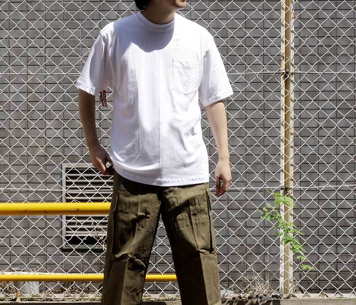 8オンスのずっしり感が魅力のビッグシルエット半袖Tシャツ。胸元にポケットのないタイプでよりシンプルなコーデに活用できる1枚です。