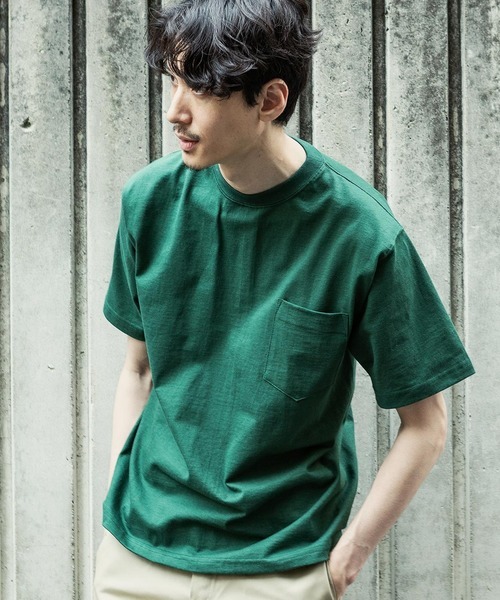 定番かつ究極のマックスウェイトの半袖Tシャツ。肉厚のコットン生地を使用し、ぎっしりと詰まった目が特徴的な製品です。詰まった首元と胸元のポケットが、シンプルな半袖Tシャツでもおしゃれな着こなしができます。