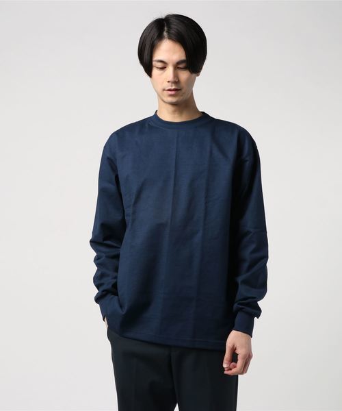 こちらはポケットがないタイプのロンTで、タートルではなく丸首デザインを採用しています。ヘビーウェイトの厚手生地が暖かく身を包むので、トレーナーのように着ることが可能。カジュアルコーデの鉄板アイテムです。