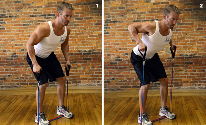 初心者、軽く肥大化させたい人は高負荷のトレーニングチューブを使う、もしくはトレーニングチューブを短めに持って使って鍛えましょう。