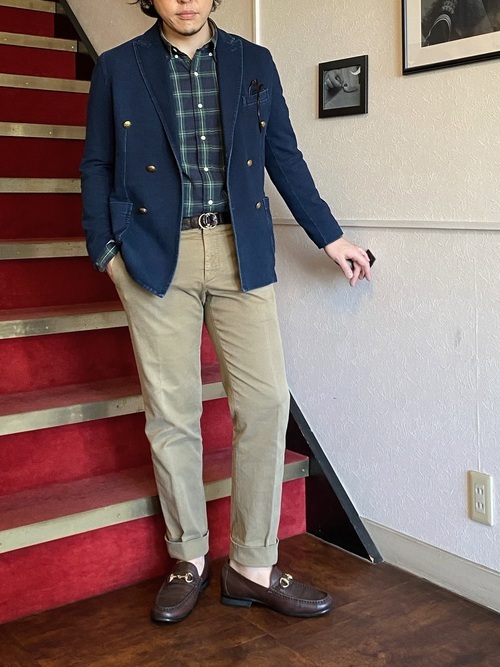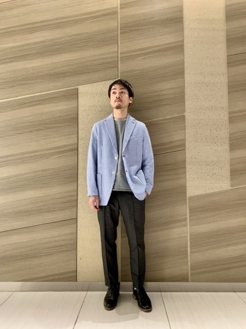 チルコロ1901のジャケットと、チノパンとを組み合わせたメンズコーデです。フォーマルな見た目も、カジュアルな雰囲気もあるチルコロ1901のジャケットは、チノパンとの相性もいいです。レザーシューズを選ぶことで、大人のかっこよさが演出できます。
