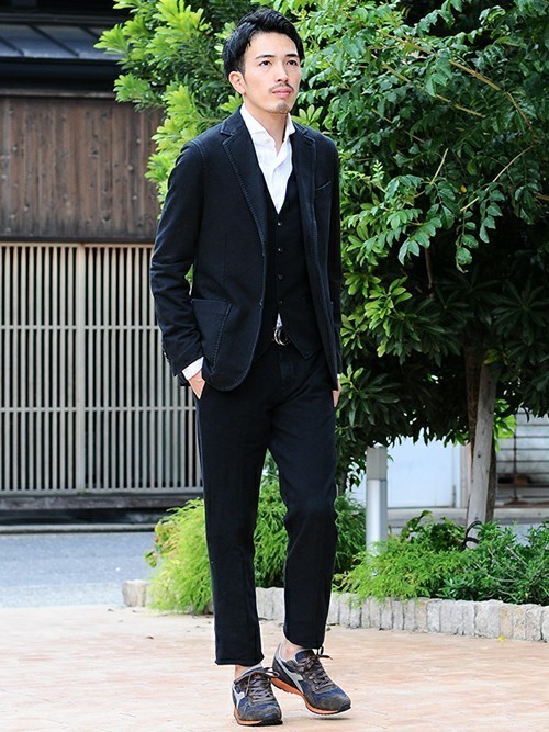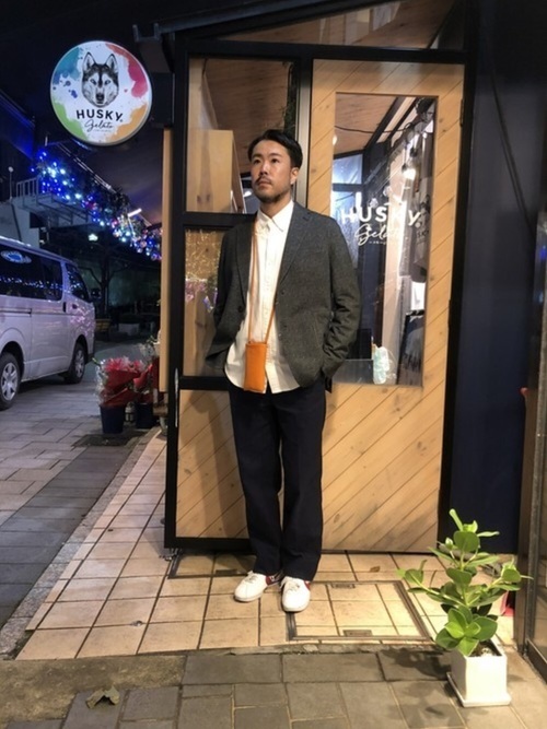 一見、かなりカジュアルなメンズコーデですが、チルコロ1901ジャケットを一枚羽織るだけでフォーマル寄りの綺麗なコーデが完成します。インナーに白シャツを選ぶことで、清潔感がかなり増すので、ぜひ挑戦してください。