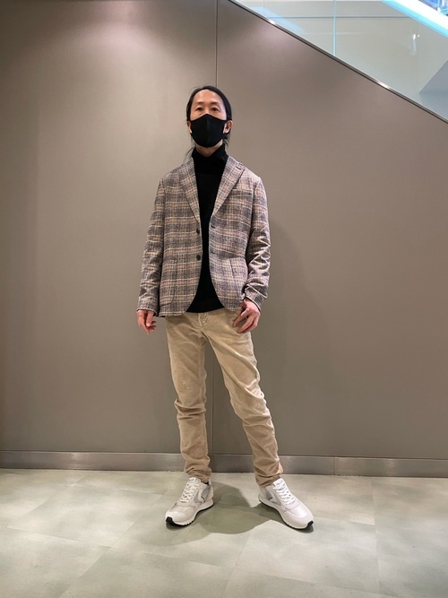 チルコロ1901では珍しいインディゴジャージー2プリーツパンツを使った着こなしです。レザーの靴との相性もよく、全体的に綺麗なシルエットが実現しています。インナーはカットソーでもマッチしますので、好きなカラーで組み合わせてみてください。