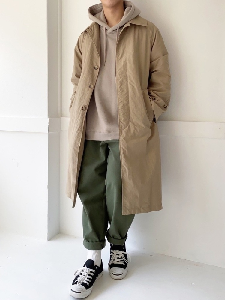 カーゴパンツ×ロングトレンチコート