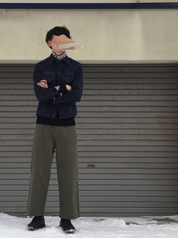 ワイドチノパン×ニット×デニムジャケット