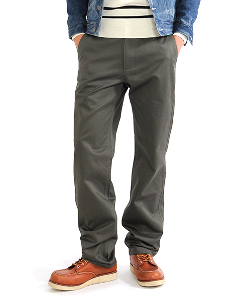 大人のアメカジコーデが作りやすいカーキのチノパンです。ストレートタイプのシンプルなカーキパンツは、どのアウターとも合わせやすくスマートに着こなせますよ。強度のあるツイル素材を使用しているので、伸縮性が高く着心地も抜群です。