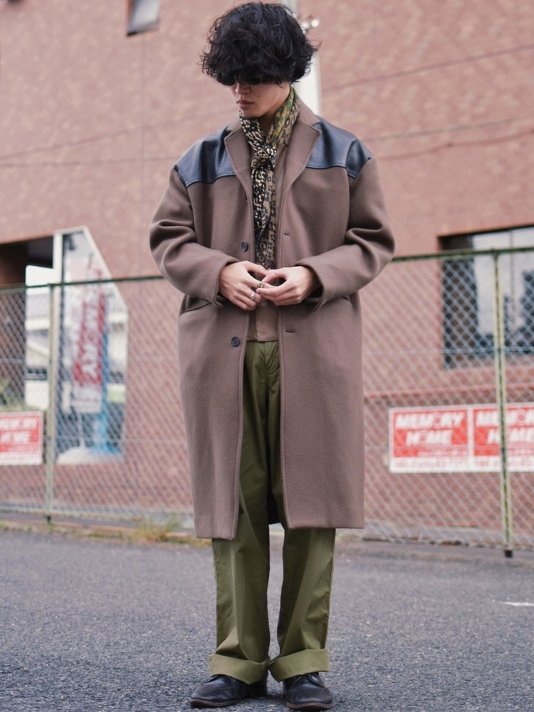 ストレートパンツ×スカーフ×ドンキーコート