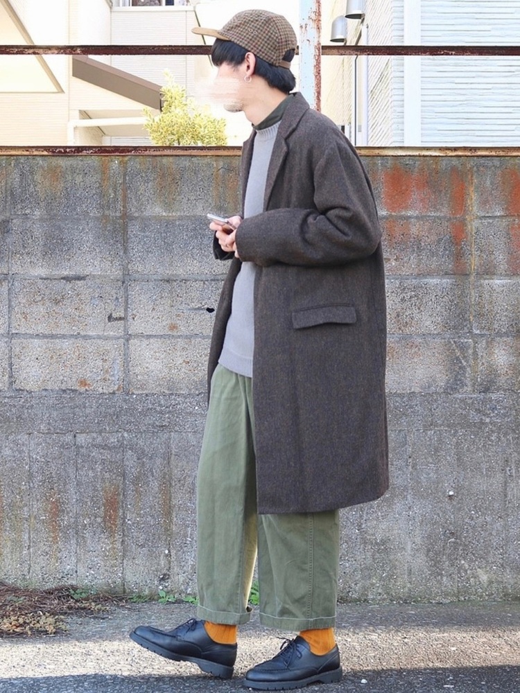 カーキパンツを着こなした冬メンズコーデ集