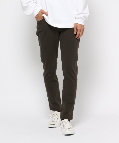 縦横へ伸びる高い伸縮性を持つモーションテック素材に、起毛をかけた暖かい生地を使用したスキニータイプのカーキパンツです。保温性が高い生地を使ったアイテムは分厚いものが多く、太って見えがちですがスキニータイプなので野暮ったく見える心配もありません。暖かさとスタイルの良さ、両方を叶えられる1本です。
