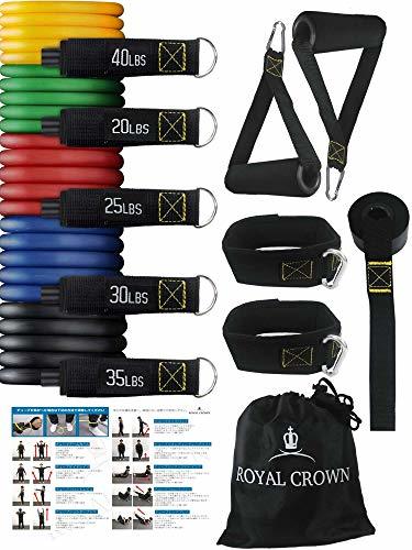 ROYALCROWNレーニングチューブ強度別5本セットは強度の違うチューブが5本セットで販売されているので、まとめて購入したい人にはおすすめのチューブです。チューブの負荷は、20ポンド(約9kg)・25ポンド(約11kg)・30ポンド(約13kg)・35ポンド(約15kg)・40ポンド(約18kg)の5種類があります。