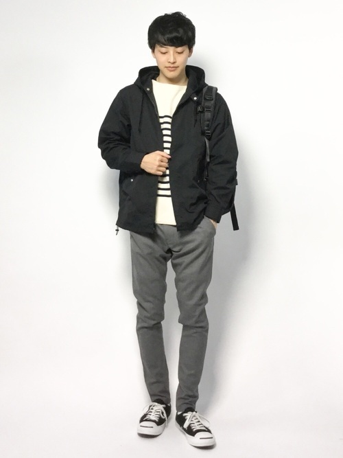 春先のちょっとしたお出かけスタイルにぴったりな着こなしです。シンプルではありますが、色味を統一しているのでおしゃれな雰囲気に。アウターは軽めのスプリングパーカーを羽織って春の雰囲気を醸し出しています。