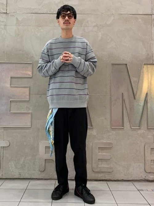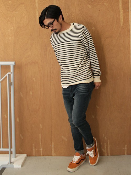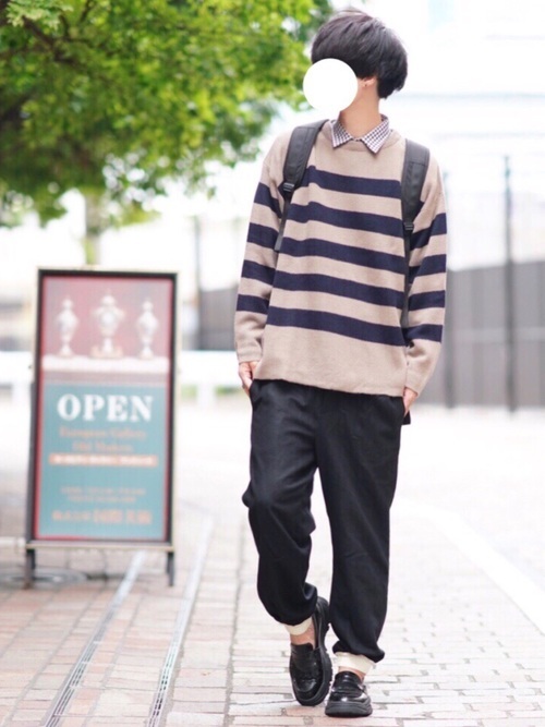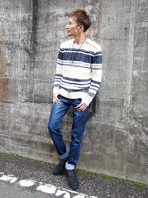 では、実際に着用している方の着こなしを見ていきましょう。春のボーダーニットを着こなしたメンズコーデを確認していきます。