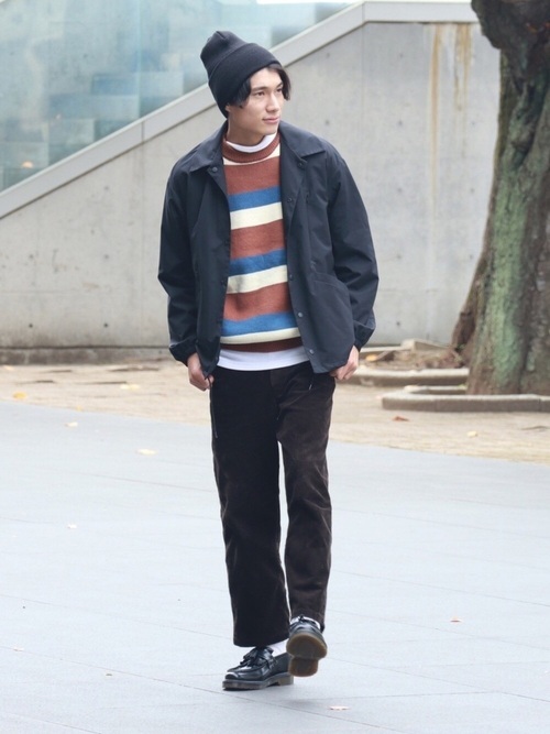 秋と冬のボーダーニットコーデの違いはアウターとの相性に現れます。ではさっそく冬のボーダーニットを着こなしたメンズコーデをチェックしましょう。