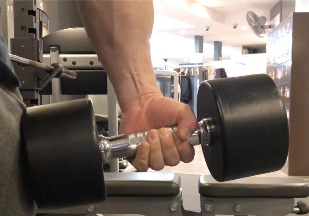 続いて、ダンベルローイングを行う際の手首の角度について解説していきます。