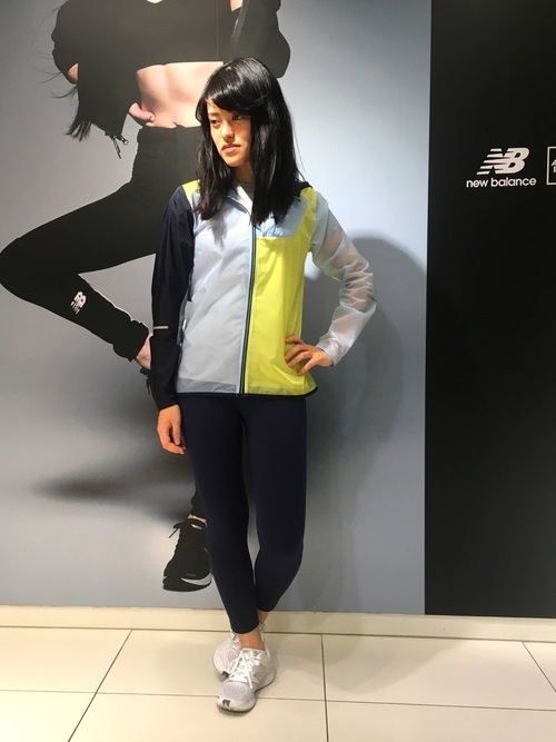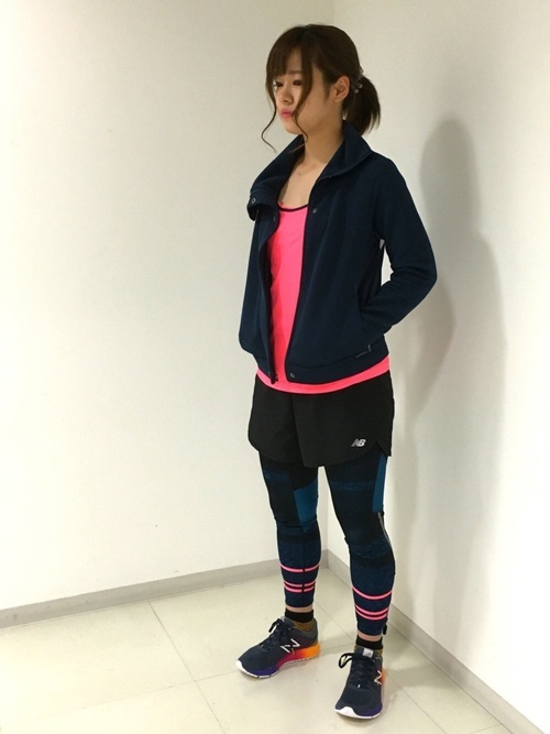 こちらのコーデはトップスの紺とブルー系のアウターが明るい印象を与えています。ランニングと同時にファッションも楽しみましょう。