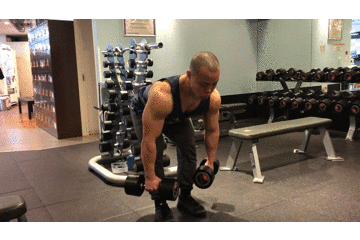 ダンベルローイングは僧帽筋だけでなく広背筋にも負荷が掛けられる筋トレです。広背筋は背中の最も大きい筋肉なので、首を太くするだけでなく、男らしいかっこいい背中になりたい方にオススメ。僧帽筋を鍛えて小顔効果にアプローチしながら、スラッとかっこいい印象を目指せるトレーニングです。