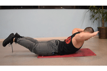 腰が曲がるほど背中を反らせていると、筋肉にもうまく負荷をかけられません。お腹や胸だけを床に接した状態を意識すれば、腰まで反りにくくなります。